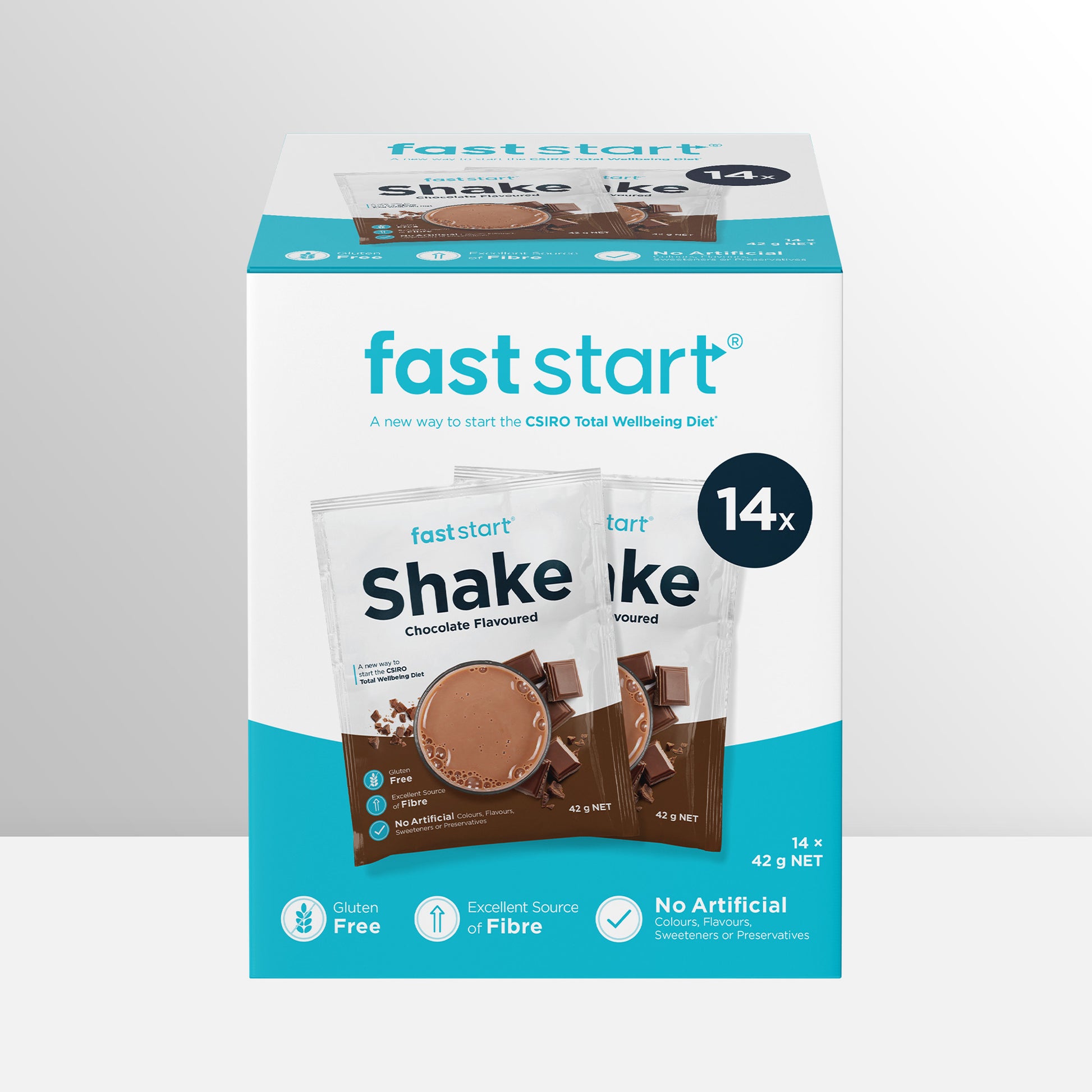 - 14 x Chocolate Flavoured Fast Start Shakes
