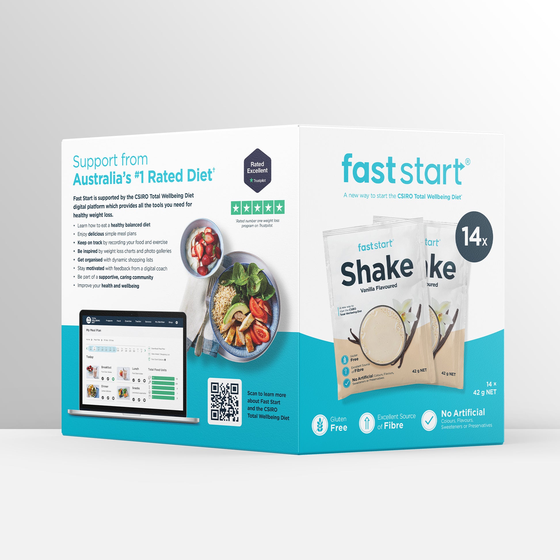 Our Fast Start Vanilla Shakes are ideal if you'd like to try the new Fast Start Program or need a top-up supply of meal replacements while transitioning to the CSIRO Total Wellbeing Diet. Each pack includes: